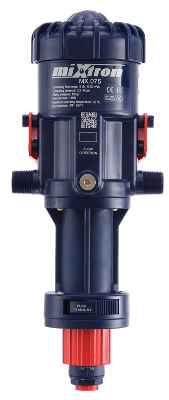 The dosing pump MX.250.P110 requires no power supply. It is a versatile and reliable solution for dosing liquids. Thanks to its flexible dosing ratio and operating pressure of between 0.3 and 6 bar, it is suitable for various applications. Its high strength is ensured by the AISI 316 and Duplex metal components, while the high-quality technopolymers and range of availble seals ensure a long service life. The pump can be wall-mounted or directly installed on a drum, offering maximum flexibility and safety. Maximum peak pressure of 10 bar and operating temperature between 5°C and 40°C.
